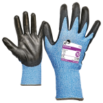 Manusi de protectie izolate, fara cusaturi, tricotate din fire sintetice, cu un strat de latex microporos si respirabil in palme si pe degete si nervuri flexibile tricotate la incheieturi.