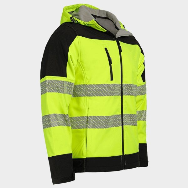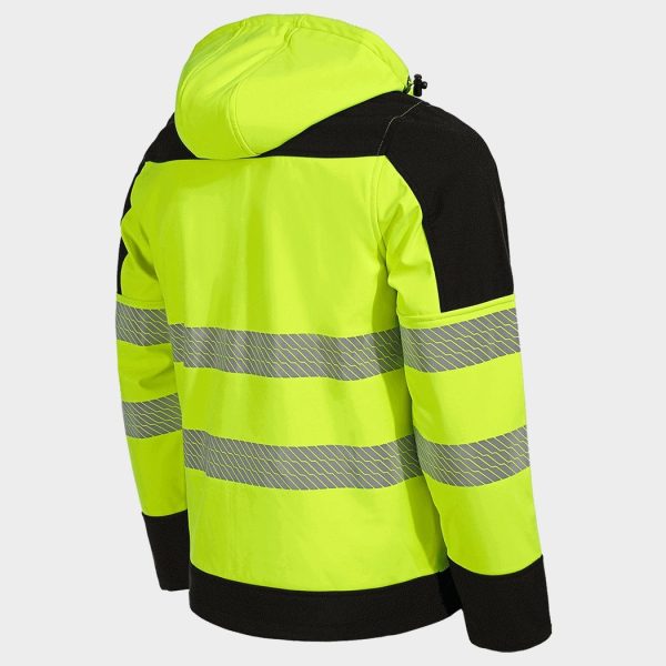 Jacheta softshell de inalta vizibilitate, cu gluga si benzi reflectorizante pe maneci si corp, asigurand vizibilitate si siguranta ridicate. Croiala dreapta si inchidere cu fermoar YKK® pentru fiabilitate si durabilitate. Gluga si mansete reglabile cu inchidere cu velcro pentru o potrivire mai buna. Doua buzunare laterale practice si un buzunar vertical la piept pentru depozitare convenabila. Captuteala moale din lana pentru un plus de confort si caldura. MATERIAL: poliester 150D intins mecanic, membrana TPU, lana, 290 g/m²; Coloana de apa de 8000 mm, permeabilitate la aer 3000 mpv