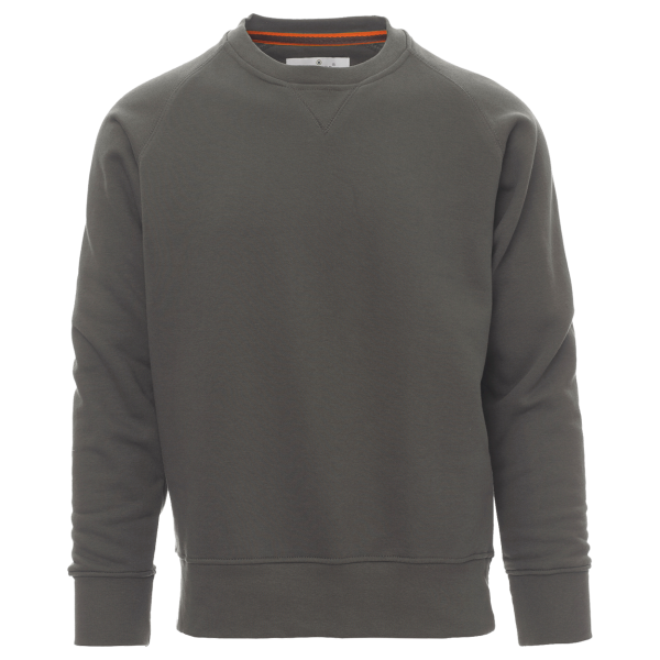 Bluza de trening pentru barbati, cu guler rotund, maneca raglan, cu cusatura in V estetica la nivelul gulerului. Banda elastica la mansete si in talie, cusaturi intarite. Compozitie: 70% BUMBAC + 30% POLIESTER Aspect: tESATURA PIEPTANATA Greutate: 300 GR/MQ