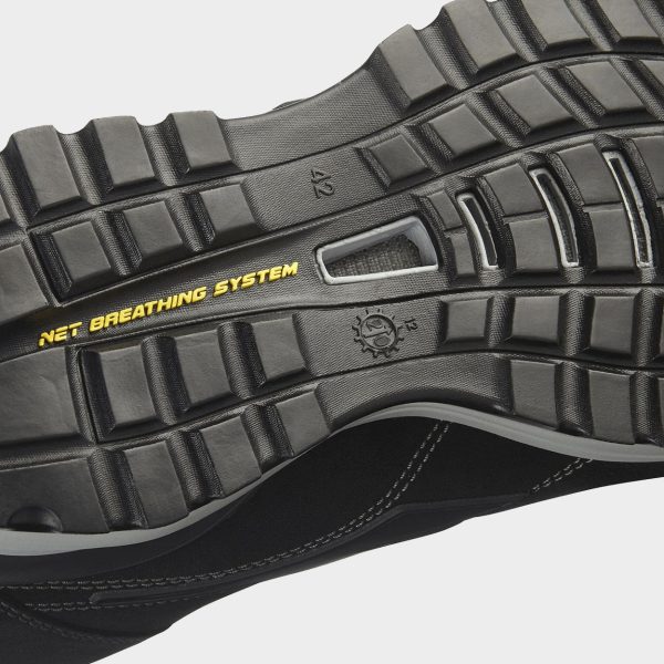 PARTEA SUPERIOARA: piele Perwanger italiana impermeabila, rezistenta la zgarieturi, respirabila. CAPTUSEALA: tridimensionala, textil cu structura de plasa, respirabila si antiderapanta in zona calcaiului. BRANT: detatabil, respirabil cu fibre de carbon. TALPA: cauciuc nitrilic termorezistent, sistem Geox Net Breathing – orificiile piciorului asigura o patrundere optima a aerului, in timp ce membrana impiedica patrunderea apei in pantof, oferind rezistenta maxima la apa. BOMBEU: aluminiu 200J LAMELA DE PROTECtIE: nemetalic, rezistenta ridicata la perforare K-sole, usoara si flexibila LAtIME:11