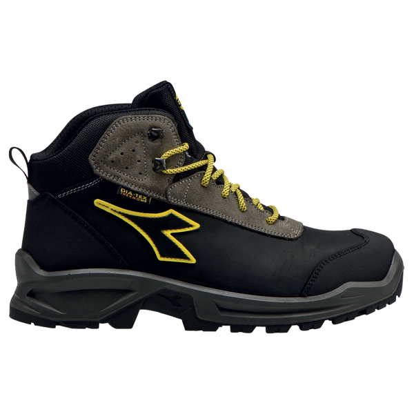 Bocanci de lucru de protectie Diadora Sport Diatex Mid S3, cu partea superioara fabricata din nubuc, piele italiana si piele de caprioara hidrofuga pentru durabilitate si rezistenta la apa. Brantul acestor bocanci este detasabil, respirabil si microperforat, fiind realizat din spuma PU si carbune activ pentru confort si gestionarea mirosului. Talpa este din poliuretan, iar calcaiul si partea din fata a talpii sunt intarite cu o membrana DIA-TEX TPU pentru protectie suplimentara. Bombeul este confectionat din aluminiu si rezista la impacturi de pana la 200 Joules. Placa este de tip K-sole, nemetalica si are o rezistenta ridicata la perforare pentru siguranta sporita.