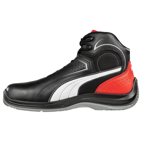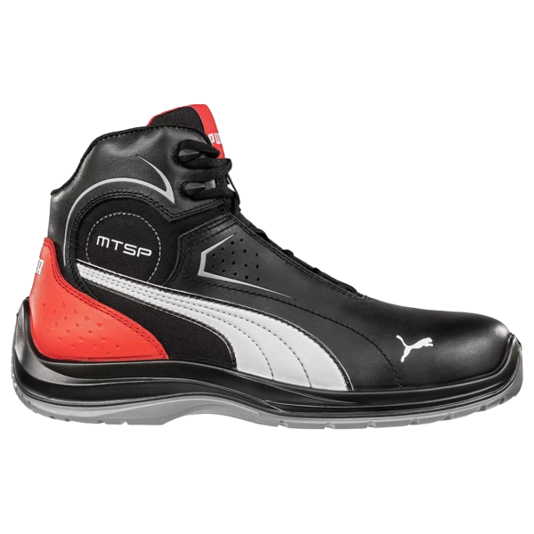 Bocanci de protectie Puma Touring MID, cu partea superioara a incaltamintei realizata din piele naturala, lipsita de metale pentru a oferi protectie impotriva electricitatii statice. Captuseala este dotata cu sistemul micro-canal BreathActive, care permite o mai buna respirabilitate si absorbtie a umiditatii. Brantul evercushion® plus combina PU-ul de densitate joasa cu PORON®, oferind protectie suplimentara pentru calcai, amortizand socurile si absorbind energia. Cu talpa MOTO PROTECT fabricata din PU cu dubla densitate, bocancii Puma Touring ofera protectie antiderapanta. Mai mult, acestia includ si un sistem antitorsionare MTSP pentru a permite o miscare naturala a piciorului. Bombeul este realizat dintr-un compozit intarit cu fibra de sticla, avand proprietati antimagnetice si de izolare termica. Placa FAP® este flexibila, rezistenta la perforare si fabricata din fibra cu acoperire ceramica pentru o protectie sporita.