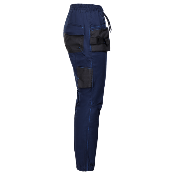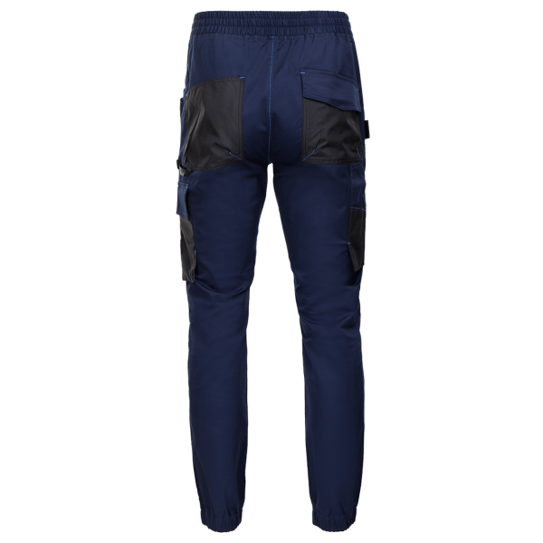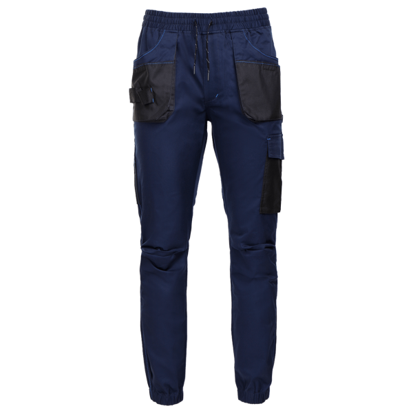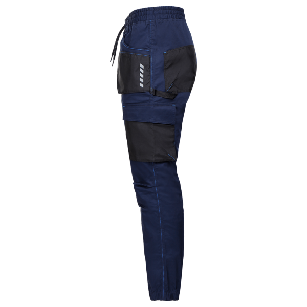 Pantaloni de lucru Revolt cu un design sportiv si croi mulat, talie elastica, sireturi si fermoar, conceputi pentru confort maxim in timpul muncii. Pantalonii de lucru Revolt includ multiple buzunare frontale si suplimentare, inclusiv unul cu clapeta pe coapsa stanga si unul pentru scule pe coapsa dreapta pentru access rapid. Prinderea elastica in zona gleznelor asigura o fixare optima, iar elementul reflectorizant prexent pe buzunarul din fata pe partea stanga asigura vizibilitate sporita. Fabricati dintr-o combinatie de materiale durabile, acesti pantaloni sunt ideali pentru activitatile de zi cu zi.
