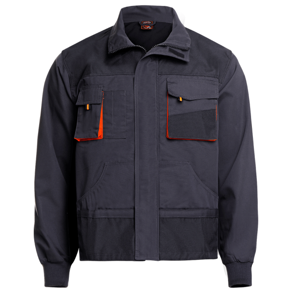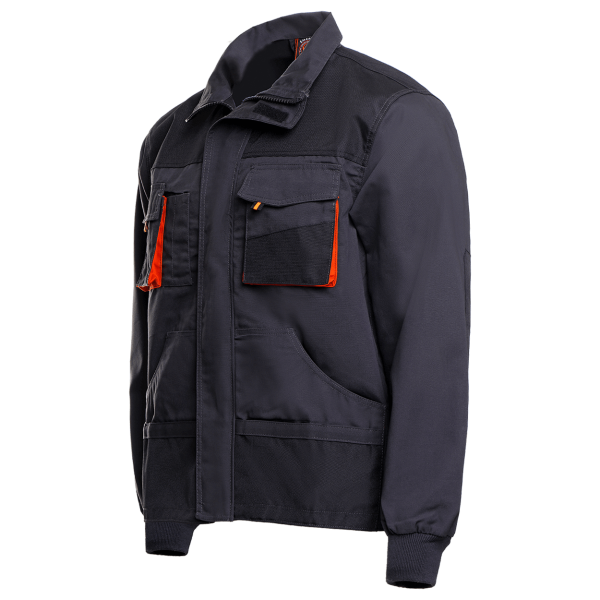 Jacheta functionala potrivita pentru lucru in toate anotimpurile model drept; doua buzunare inferioare; doua buzunare la piept cu clapeta si velcro; mansete elastice; piese intarite cu poliester 600D; inchidere cu fermoar si plastron cu benzi velcro. Material: 65% poliester, 35% bumbac, 260 g/m²