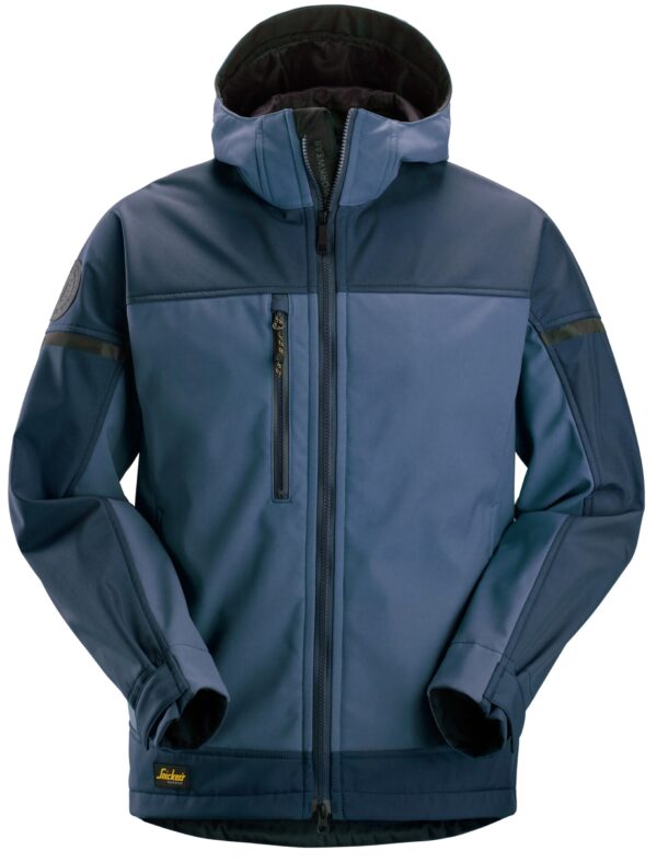 Jachetă softshell stretch, cu glugă, pentru bărbați, Snickers Workwear, AllroundWork, 1226, Navy/Dark Navy