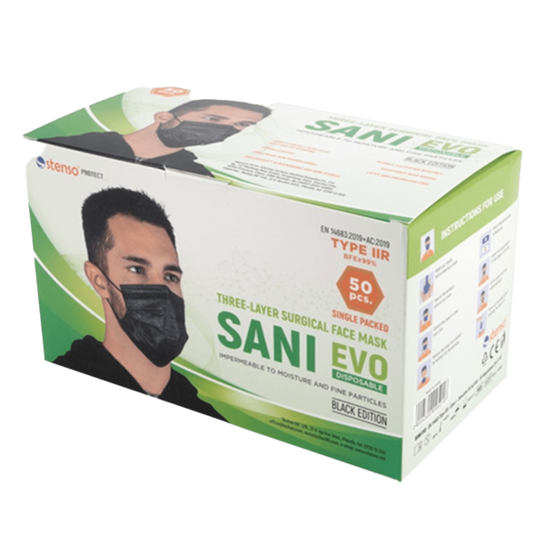 Masca medicala SANI EVO NEAGRA – TYPE IIR – 50 buc.