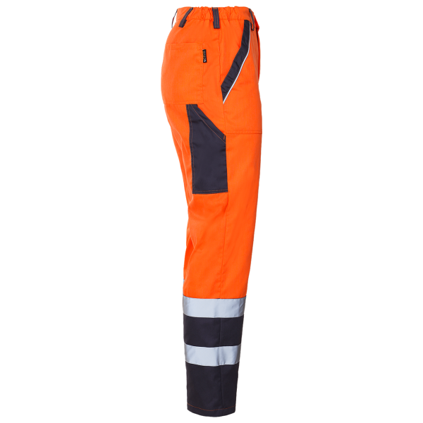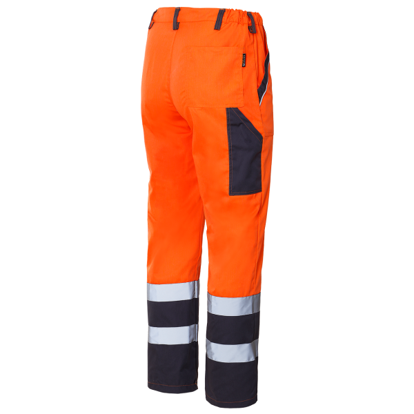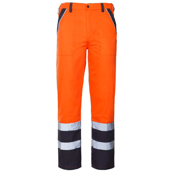 Descriere: doua buzunare laterale; un buzunar la spate; un buzunar pentru scule pe coapsa dreapta; piulite pentru o curea suplimentara; elastic partial in talie; elemente reflectorizante; culoarea semnalului Material: 35% bumbac/65% poliester, 240 g/m²
