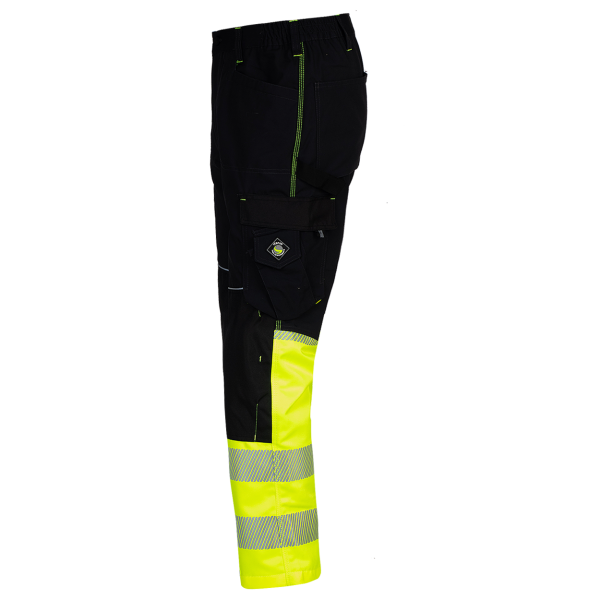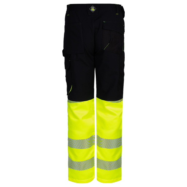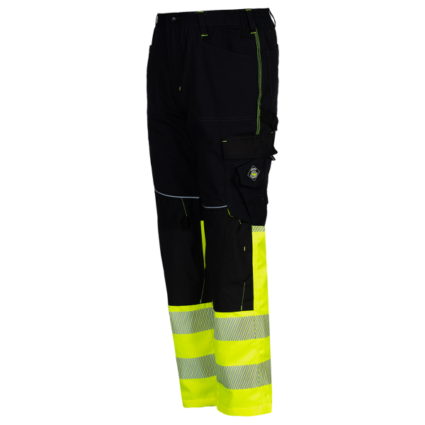 Pantaloni de lucru reflectorizanti din gama Prisma Reflex, conceputi cu functionalitatea in minte, avand buzunare practice, genunchi intariti pentru protectie suplimentara, benzi reflectorizante si elemente de semnalizare. Acestia includ doua buzunare laterale, doua buzunare la spate – unul cu husa, si un buzunar stang la sold cu clapa si un buzunar special pentru telefonul mobil. Genunchii pantalonilor reflectorizanti Prisma Reflex sunt intariti și dispun de buzunare pentru inserarea genunchierelor. Talia elastica partial asigura o potrivire confortabila, iar elementele reflectorizante adauga o vizibilitate crescuta in conditii de lumina redusa sau in timpul lucrului in zone periculoase.