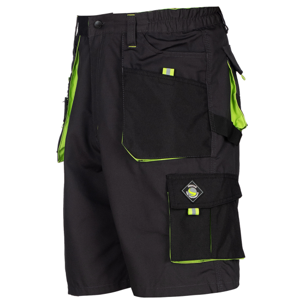 Pantaloni scurti de lucru cu o potrivire confortabila, durabilitate ridicata si detalii contrastante. t doua buzunare frontale voluminoase; t doua buzunare la spate cu clapete; t un buzunar cu clapeta pe coapsa stanga si un buzunar pentru scule in partea dreapta, bucla suplimentara pentru ciocan; t piese intarite cu poliester 600D Oxford; t talie elastica partiala pentru o mai mare libertate de mitcare. Material: 35% bumbac/65% poliester, 260 g/m².